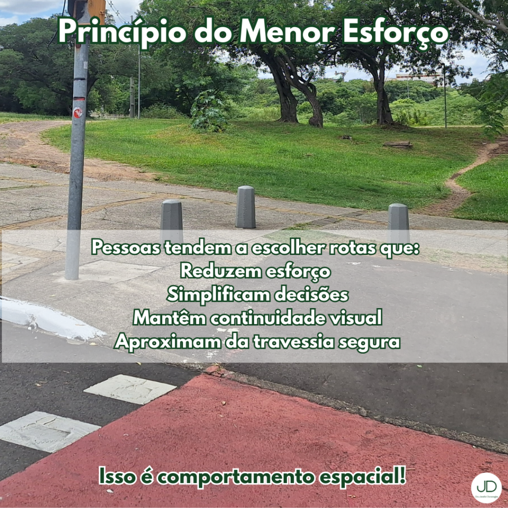 O fenômeno é conhecido como caminho de desejo (desire path), um caminho informal que surge a partir do uso contínuo do espaço. Do ponto de vista do comportamento espacial, pessoas tendem a escolher rotas que reduzam distância, tempo e esforço, além de priorizar maior percepção de segurança.