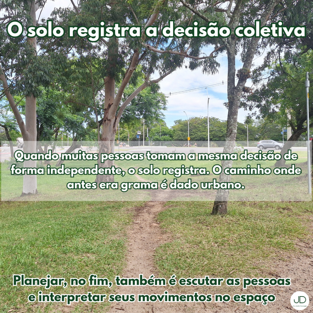 Entre o traçado formal e o traçado real existe um intervalo que revela aprendizado. É nesse espaço que o planejamento pode evoluir, tornando-se mais atento ao fluxo, à experiência e à transformação constante do contexto urbano.